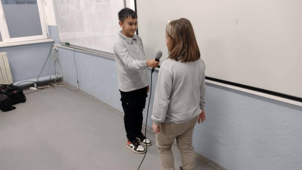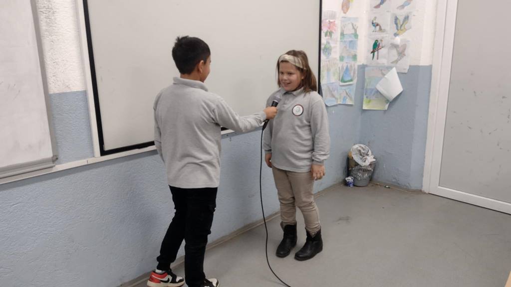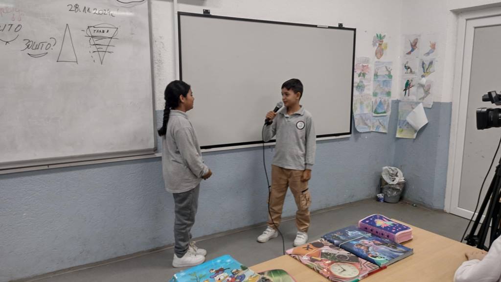 Интервјуто пак како посебен новинарски вид исто така беше опфатено во предавањето. На крајот учениците беа запознати со основните технички средства со кои се продуцира едно видео, а потоа и самите снимија едно видео интервјуирајќи се помеѓу себе за полесно преку примери да ја разберат материјата.