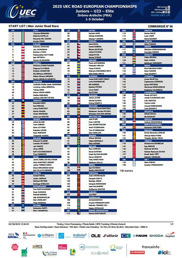 Од 1ви до 5ти Октомври во Drôme Ardèche во Франција се одржува Европско првенство во друмски велосипедизам.