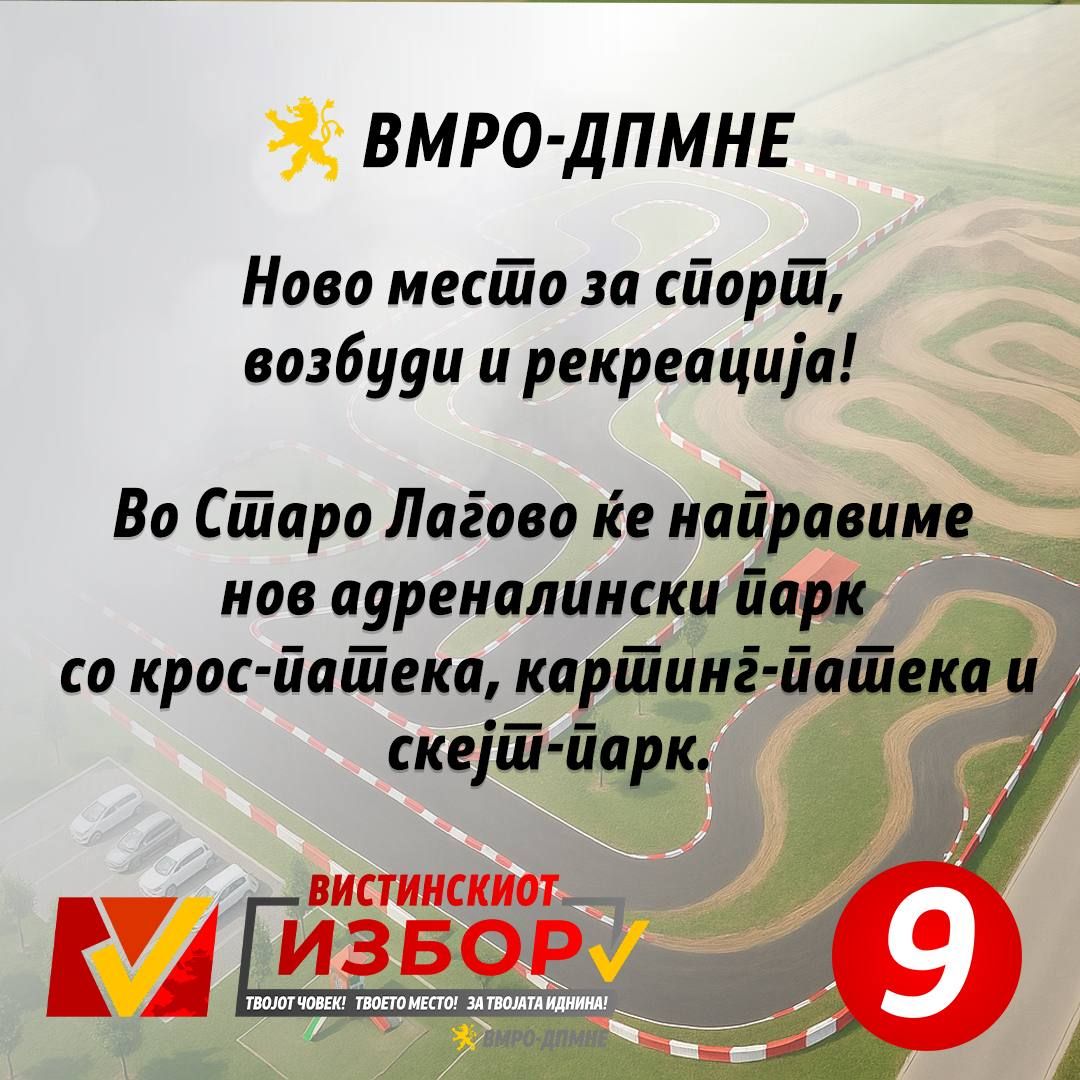 Ново место за возбуда, спорт и рекреација! Во Старо Лагово ќе изградиме нов адреналински парк, простор каде што сите љубители на спортот и брзината ќе можат да ја почувствуваат вистинската енергија!