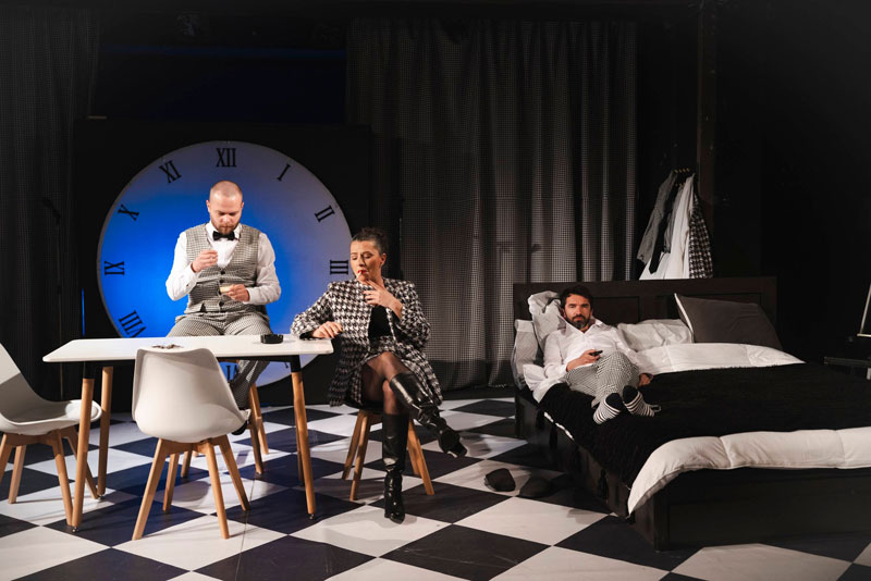 Ова е претстава за судирот меѓу објективното и субјективното време кои ретко се синхронизирани, но и за повторливоста наспроти минливоста – две спротивности од кои колку и да бегаме, секогаш, без исклучок, нѐ наоѓаат.