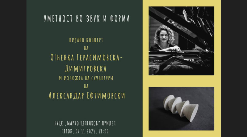 Вечерта е под мотото „Уметност во звук и форма“. На пијано ќе настапи Огненка Герасимовска Димитровска, која ќе се претстави со музика од познати композитори.