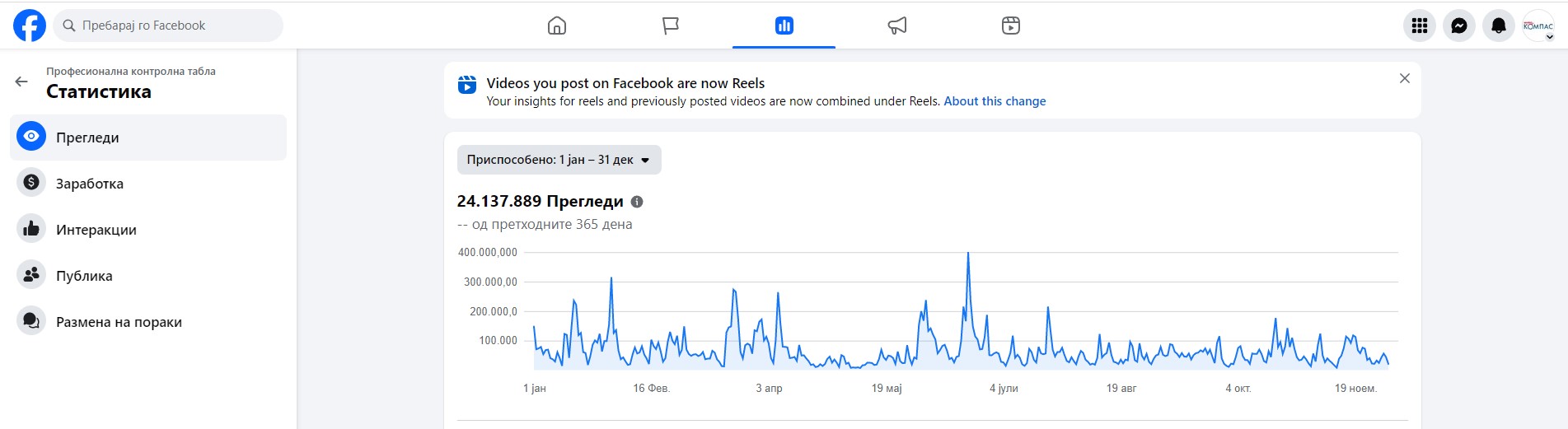 24.137.889 прегледи на ФБ за 2025 година на ИНФО КОМПАС. За само една година 10.945 нови следбеници. 31.900 вкупно следбеници до овој момент. Што значи за само 1 година бројот на оние кои не следат е зголемен за 30%. Оваа бројка од над 24 милиони прегледи значи дека бројот на прегледи месечно е над 2 милиони посетители или по 67.000 дневно. Бројки на кои сме особено горди за еден регионален портал, каде работат само двајца.